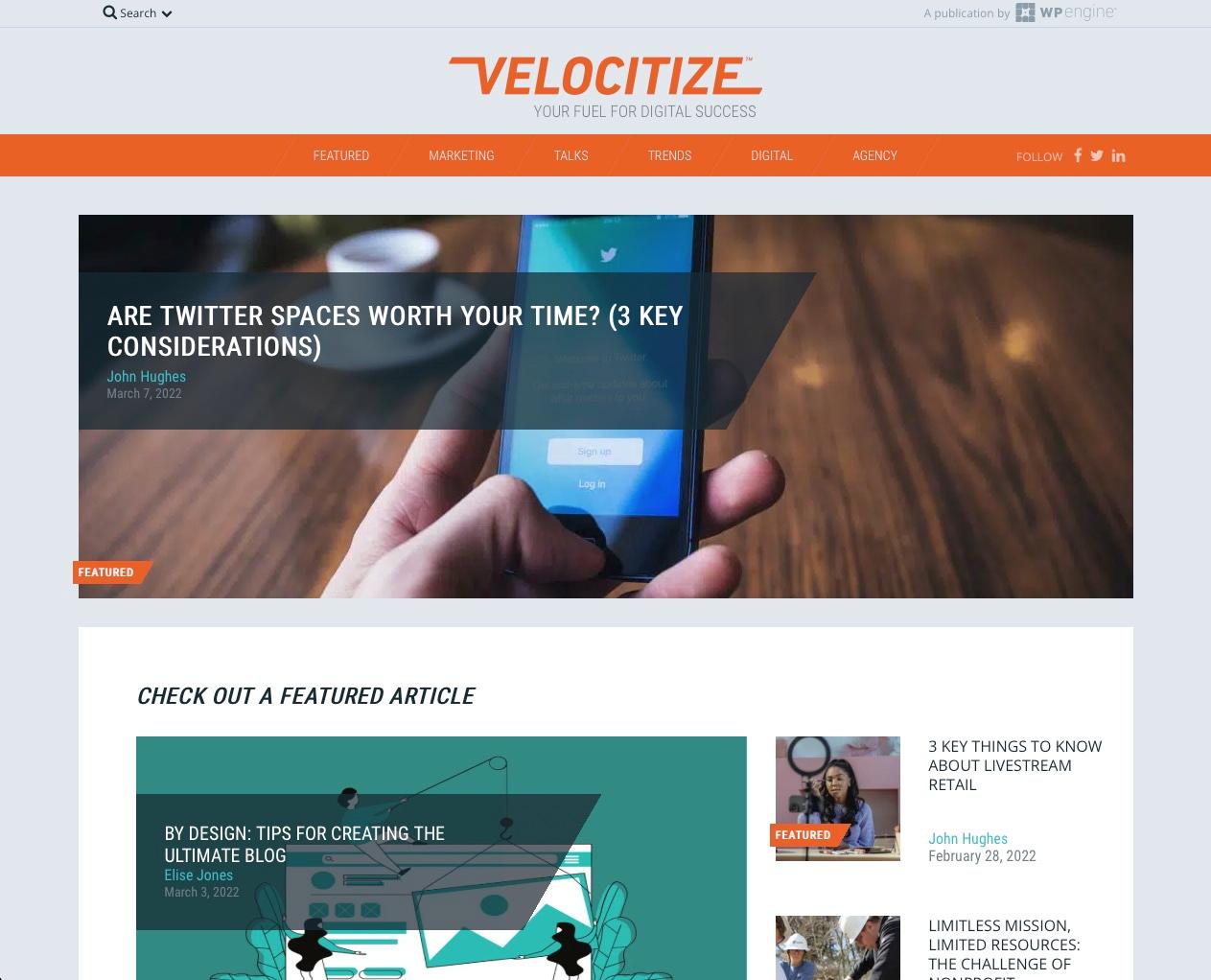 Velocitize delivers insights into the shifting trends and innovative technologies defining digital marketing today. It’s also home to Velocitize Talks, an award-winning video series featuring agency innovators, digital disruptors and marketing leaders from around the world.